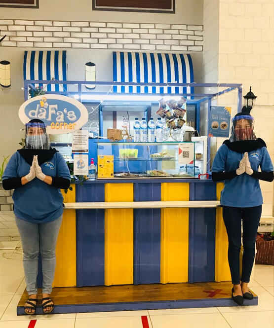 Menjual berbagai macam kue, makanan ringan serta minuman.